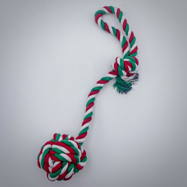 Balle en coton idéale pour jouer à l'intérieur et réguler le tartre grâce à son tressage.